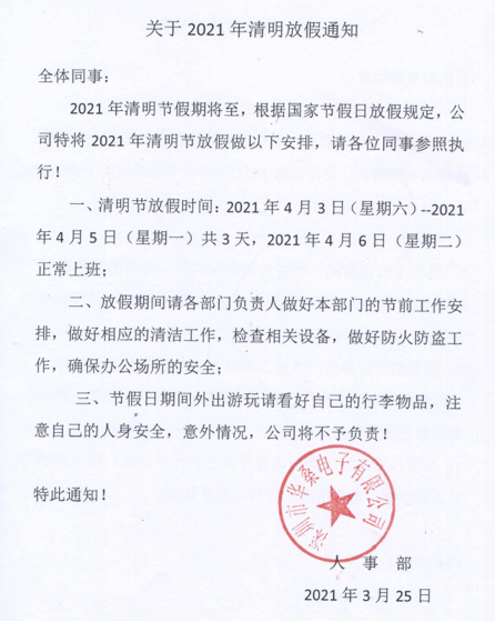 您現(xiàn)在的位置:首頁 ? 新聞資訊 ? 公司新聞 ? 清明節(jié)放假通知